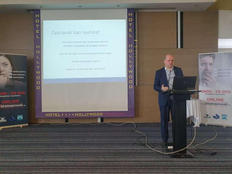 Domaćini konferencije su bili Mulka Nišić, Regionalna koordinatorica projekta Biram Oporavak i Borislav Goić, Predsjednik Udruženja, te Dragan Vukadin, šef Odsjeka za suzbijanje zloupotrebe opojnih droga Ministarstva sigurnosti BiH, koji su otvorili Konferenciju ispred više od 100 učesnika koji su predstavljali 46 državne institucije i 17 organizacija civilnog društva iz zemlje i regiona.
