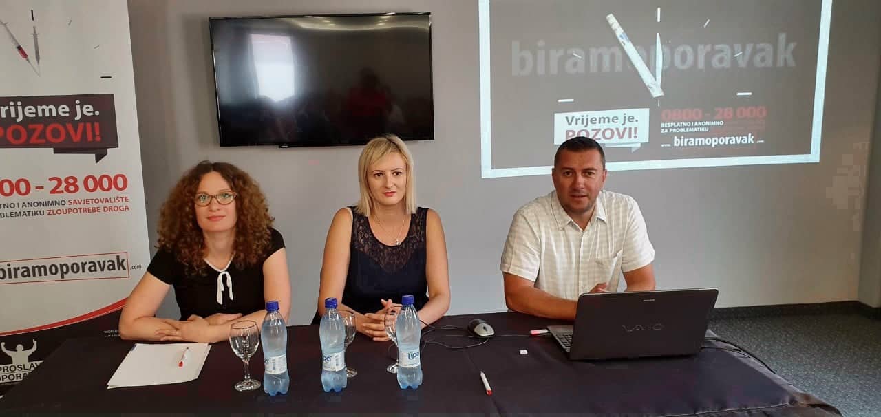 Predstavnici Udruženja „Proslavi Oporavak“ predstavili su trogodišnji regionalni projekat „Biram Oporavak“, koji za cilj ima unaprijeđenje servisa za osobe u problemu ovisnosti, putem besplatnog i anonimog savjetovališta i telefonske linije 0800 28 000, te web stranica www.biramoporavak.com, i uvezivanje svih aktera unutar lokalnih zajednica, kako bi se za osobe u procesu oporavka od ovisnosti kreirala mreža podrške ka postizanju života bez droge.