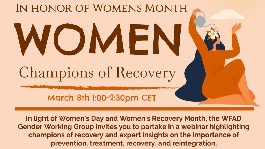 U partnerstvu sa Svjetskom Federacijom protiv droga (World Federation Against Drugs, WFAD), u okviru Radne grupe za pitanja gender-a, organizovanjem webinara se priključujemo obilježavanju Dana žena kao i Mjeseca oporavka žena.